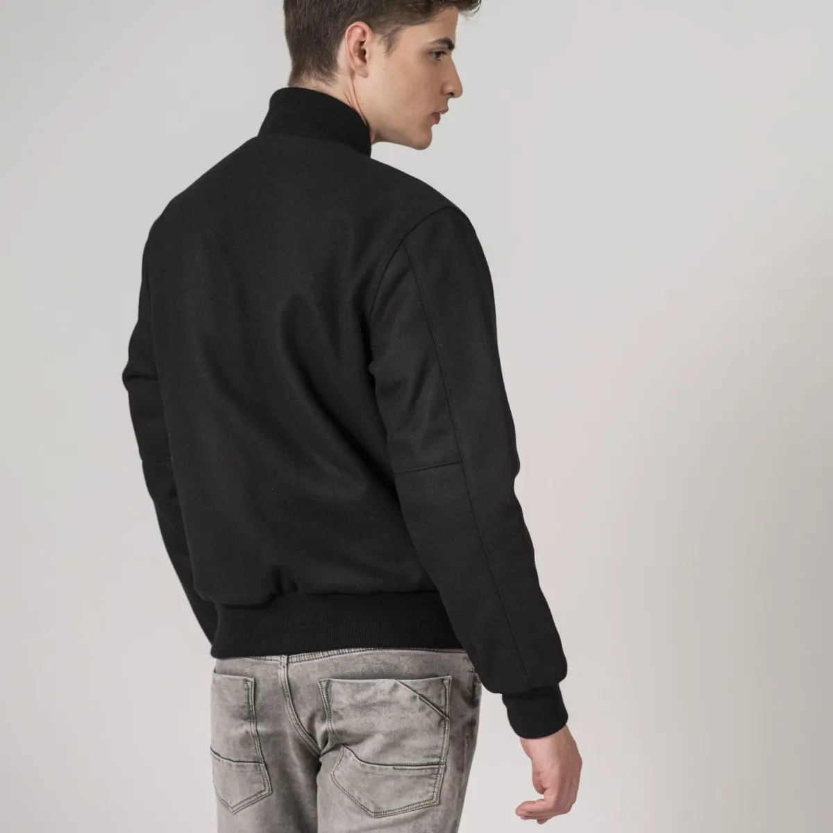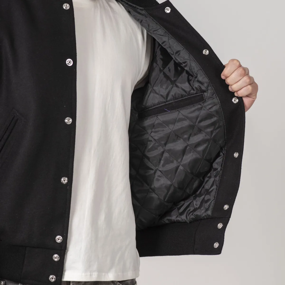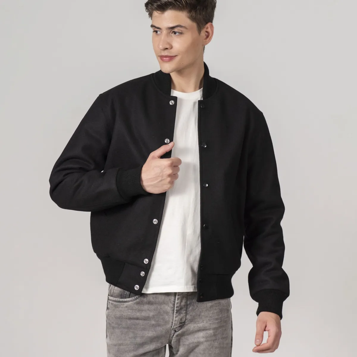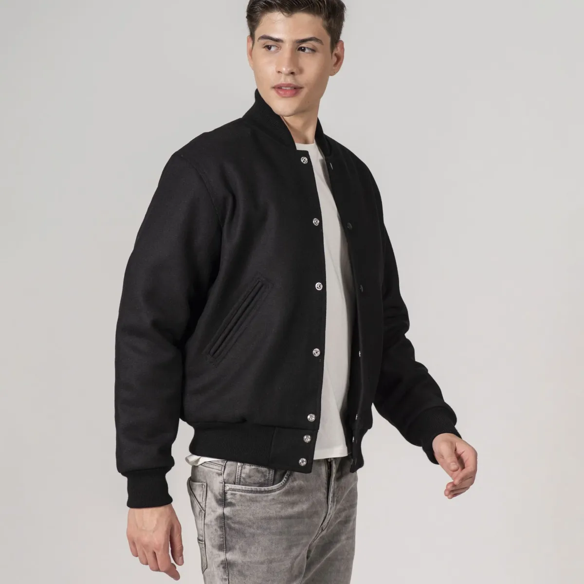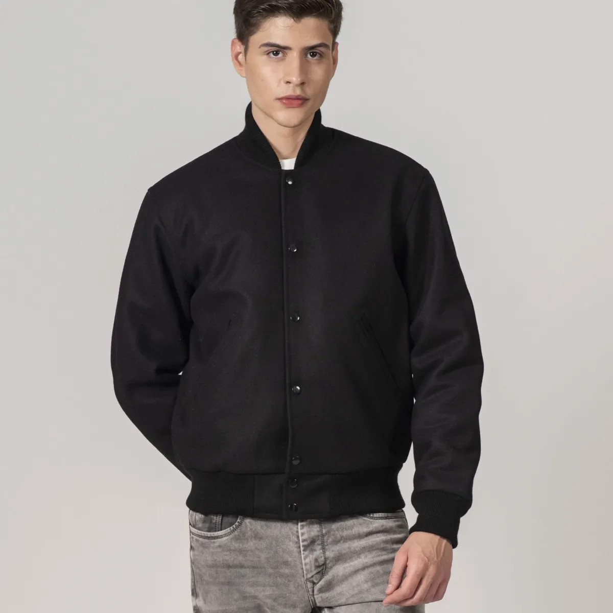 All-Wool Customizable Letterman Jacket in Sleek All-Black