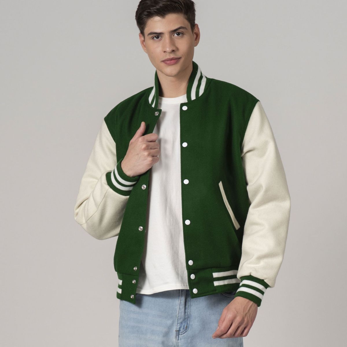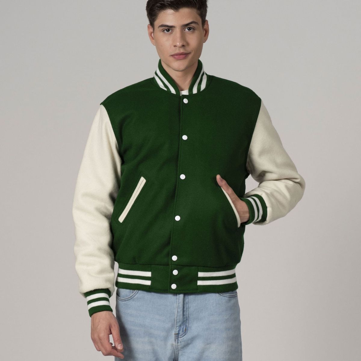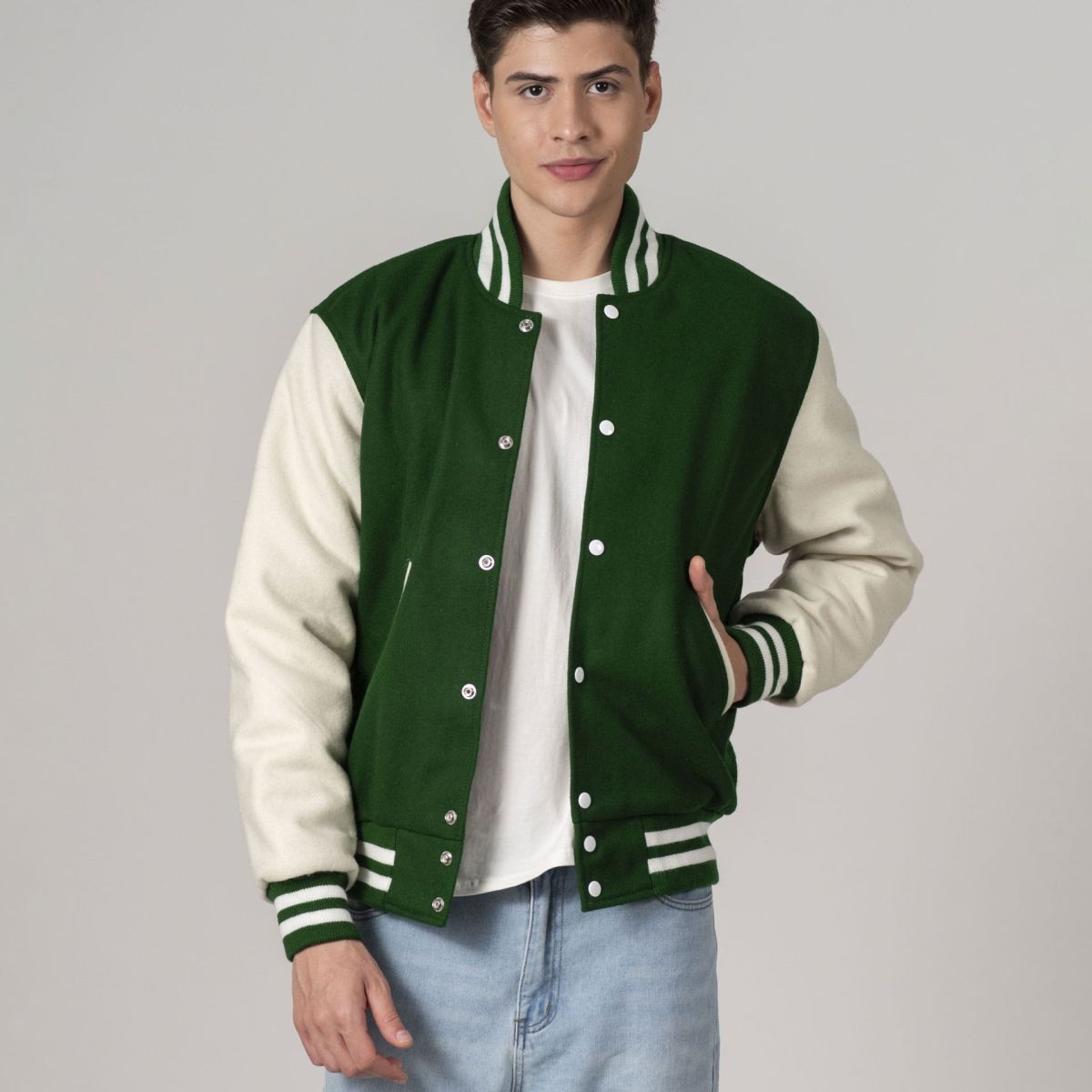 All-Wool Customizable Letterman Jacket in Kelly Green & White