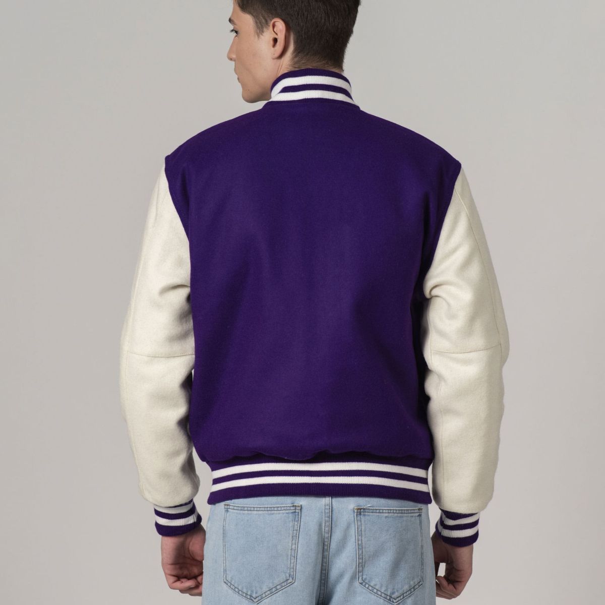 All-Wool Customizable Letterman Jacket in Purple & White