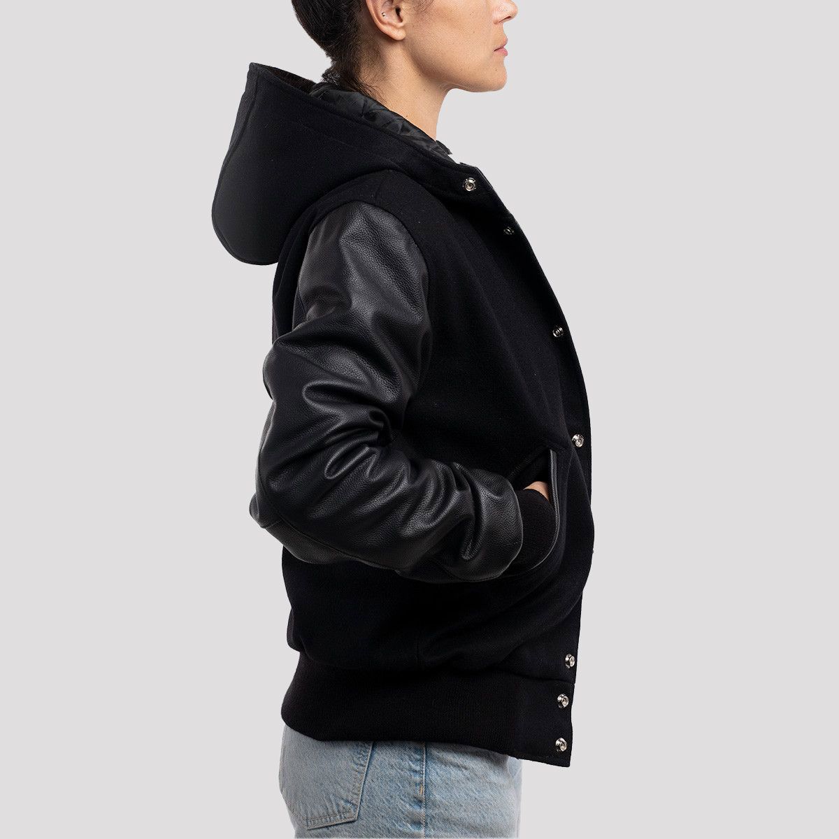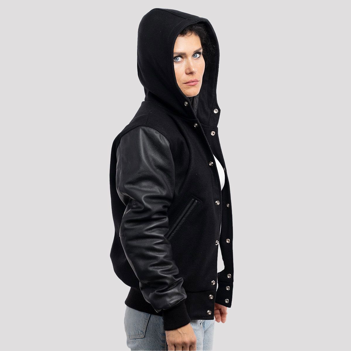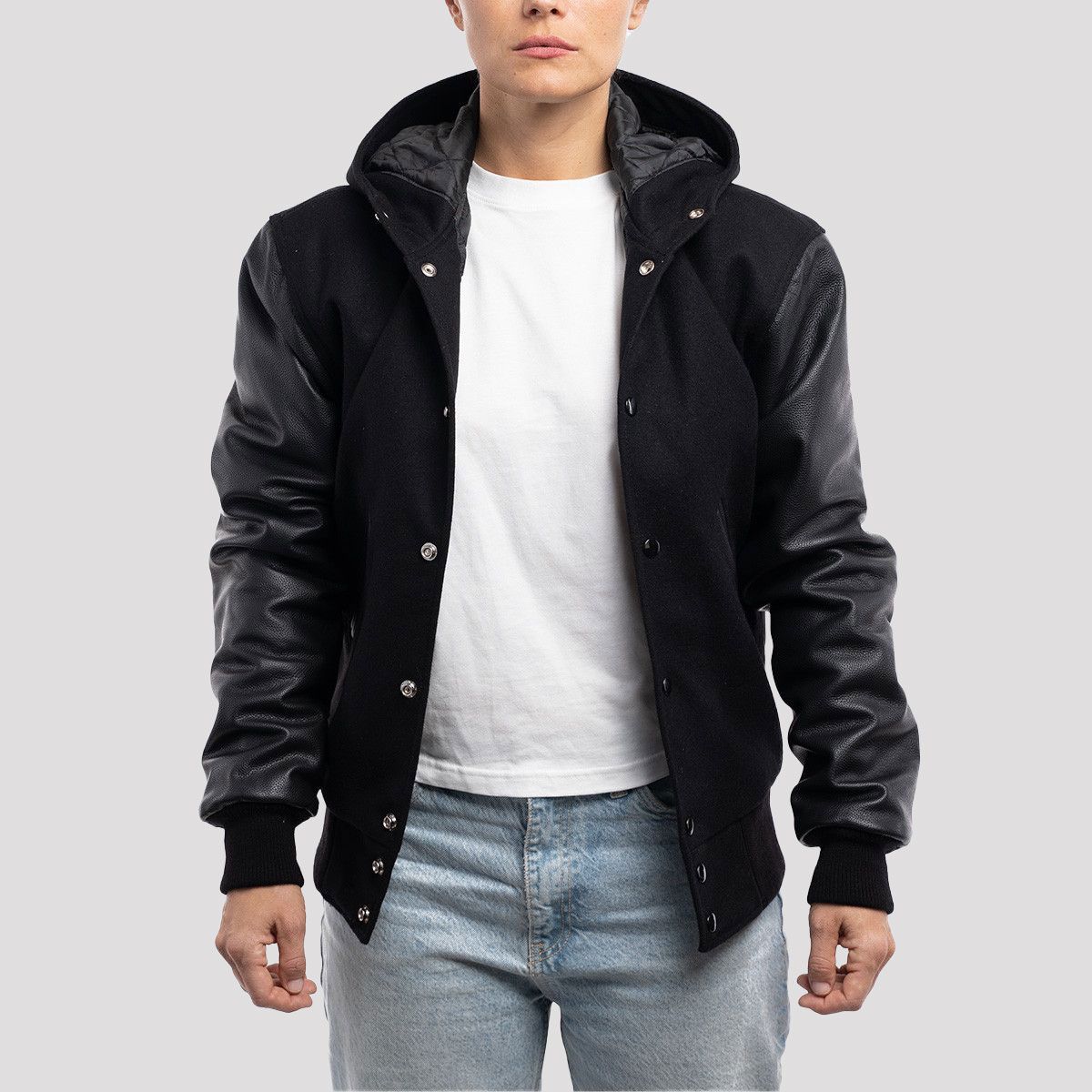 Black Wool Body & Black Sleeves Hoodie Letterman Jacket