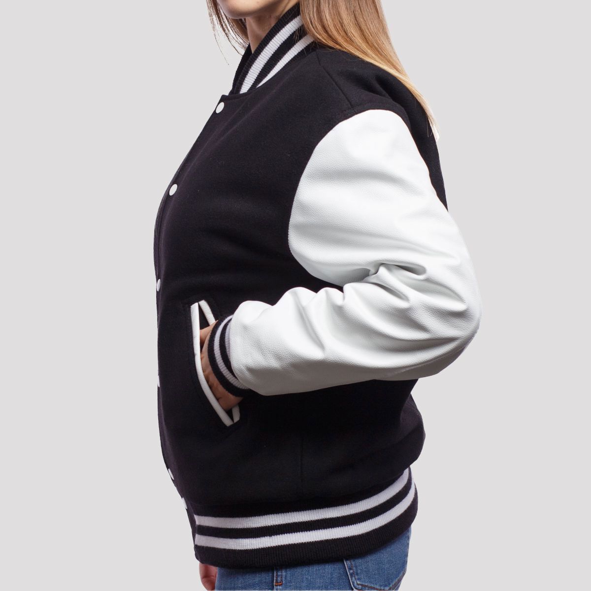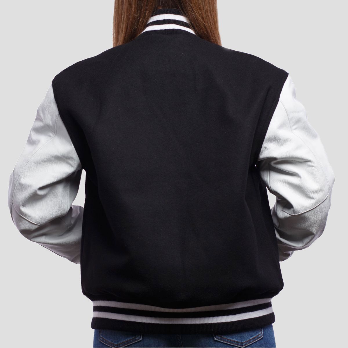 Black Wool Body & Bright White Leather Sleeves Letterman Jacket
