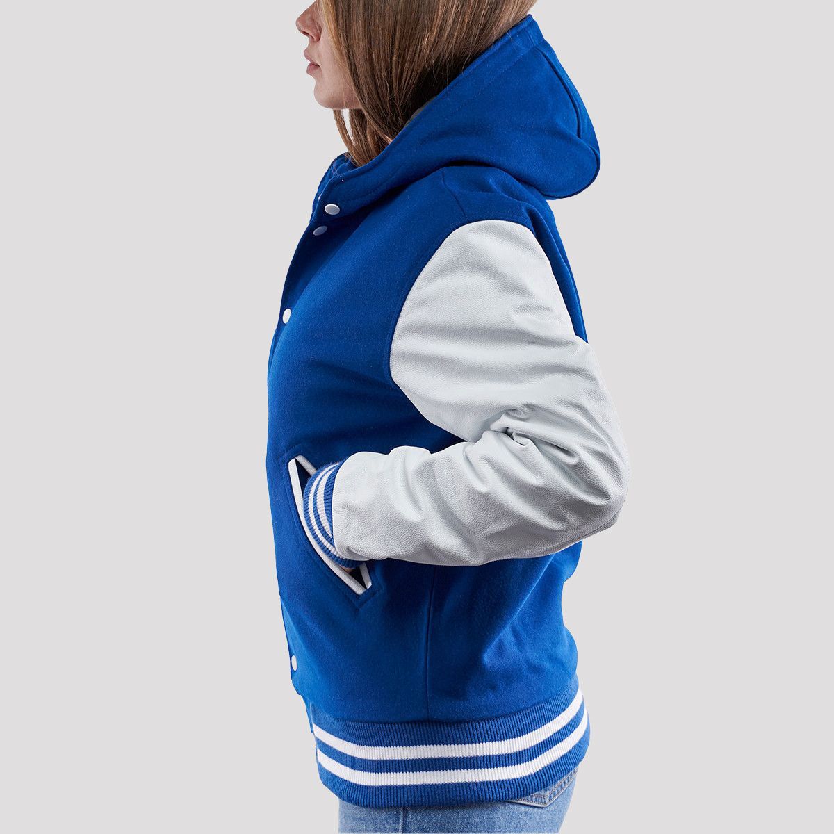 Bright Royal Wool Body & Bright White Sleeves Hoodie Letterman Jacket