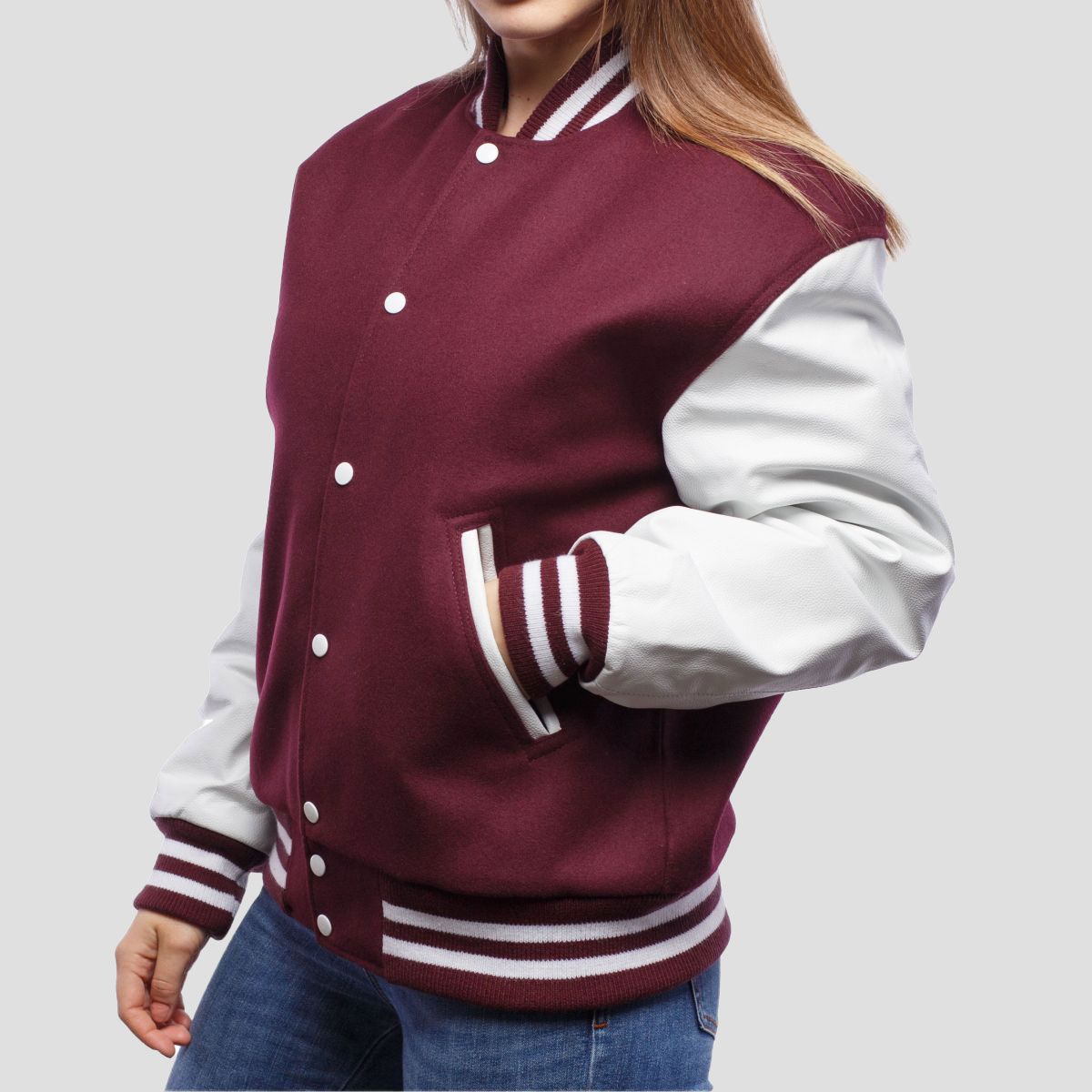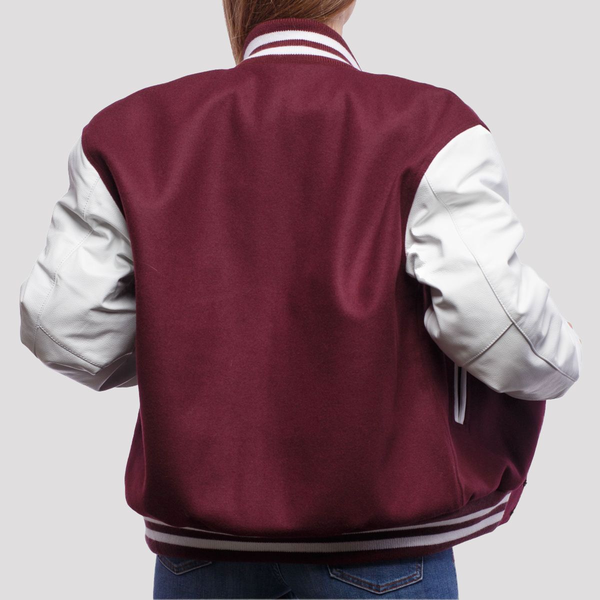 Maroon Wool Body & Bright White Leather Sleeves Letterman Jacket