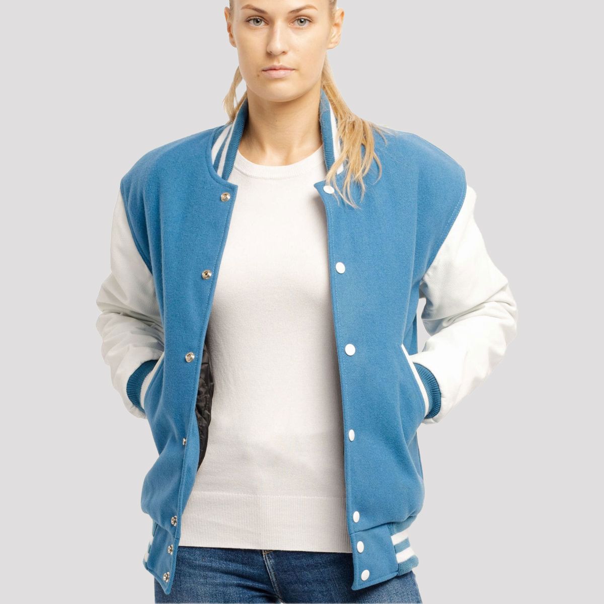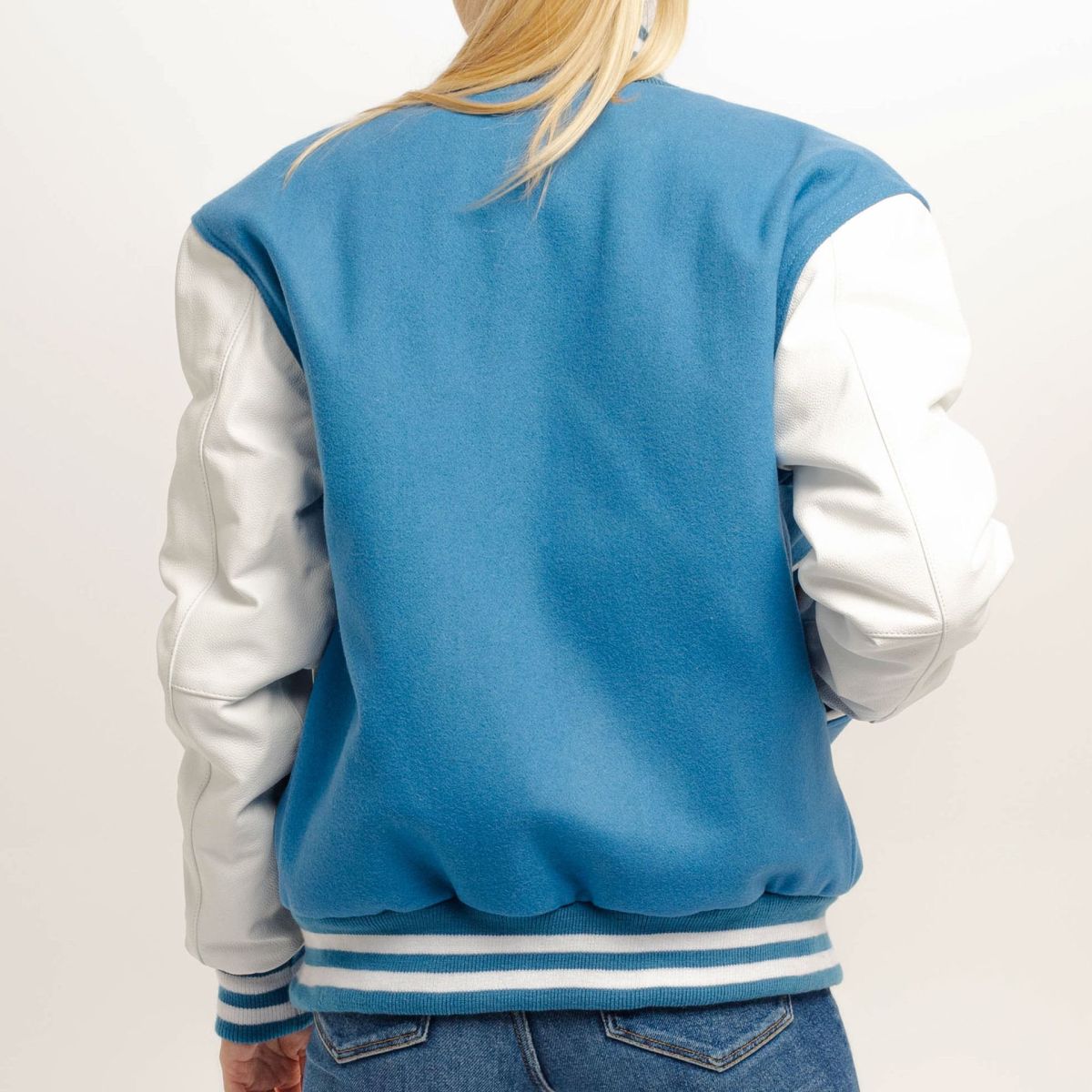 Newark Blue Wool Body & Bright White Leather Sleeves Letterman Jacket